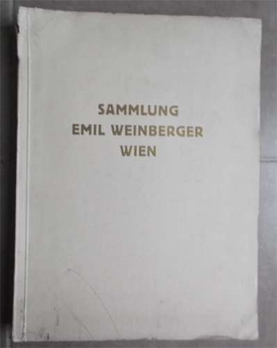 Versteigerung der hinterlassenen Sammlung des Herrn Emil Weinberger, Wien. Keramik, Glas, Arbeiten aus Silber, Bronze, Elfenbein, Email, Uhren, Astronomische Instrumente, Tapisserien, Skulpturen, Möbel, Gemälde usw. ; Dienstag, den 22., Mittwoch, den 23., und Donnerstag den 24. Oktober Wien I. / Aukce posmrtné sbírky pana Emila Weinbergera, Vídeň. Keramika, sklo, stříbro, bronz, slonovina, smalt, hodiny, astronomické nástroje, gobelíny, sochy, nábytek, obrazy apod .; Úterý 22., středa, 23. a čtvrtek 24. října Vídeň I.